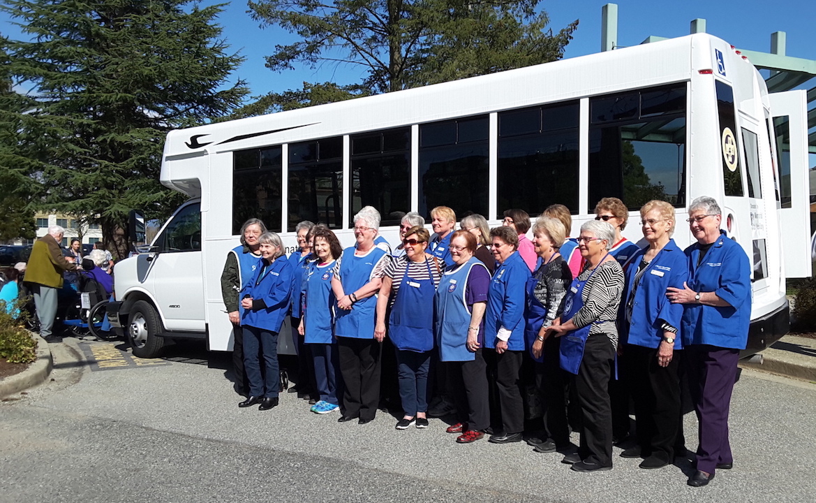 The Langley Memorial Hospital Auxiliary (1947-2017) is pleased to present a new bus to the residents of the hospital’s four residential care units. Auxiliary president Diane Thornton noted that this was the third bus purchased by the Auxiliary in its 70 years of serving the hospital, community, and healthcare: “The old bus was past its ‘best before’ date and was urgently in need of replacement. The staff and patients of our residential care facility held a celebration for us with cake and coffee—and it was a beautiful and warm day.”