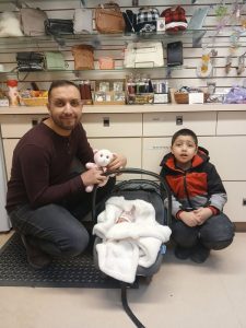 Proud dad Omar and big brother Amjad brought in their beautiful new baby girl, Joudia, to collect her pink bear announcing, “I was born at G.R. Baker Memorial Hospital.” Mama stayed just out of camera range, but her joy was unmistakable.