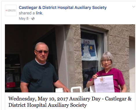 - Castlegar Mayor Lawrence Chernoff joins BCAHA Kootenay Boundary Area Director Wendy Schwab in proclaiming BC Healthcare Auxiliary Day.