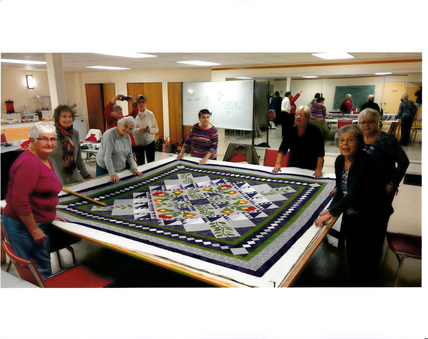 - Afternoon Auxiliary to Royal Inland Hospital (Kamloops): “A wonderful group of ladies (oldest member 94 years young) getting our ‘Fall Quilt’ ready for hand quilting.”